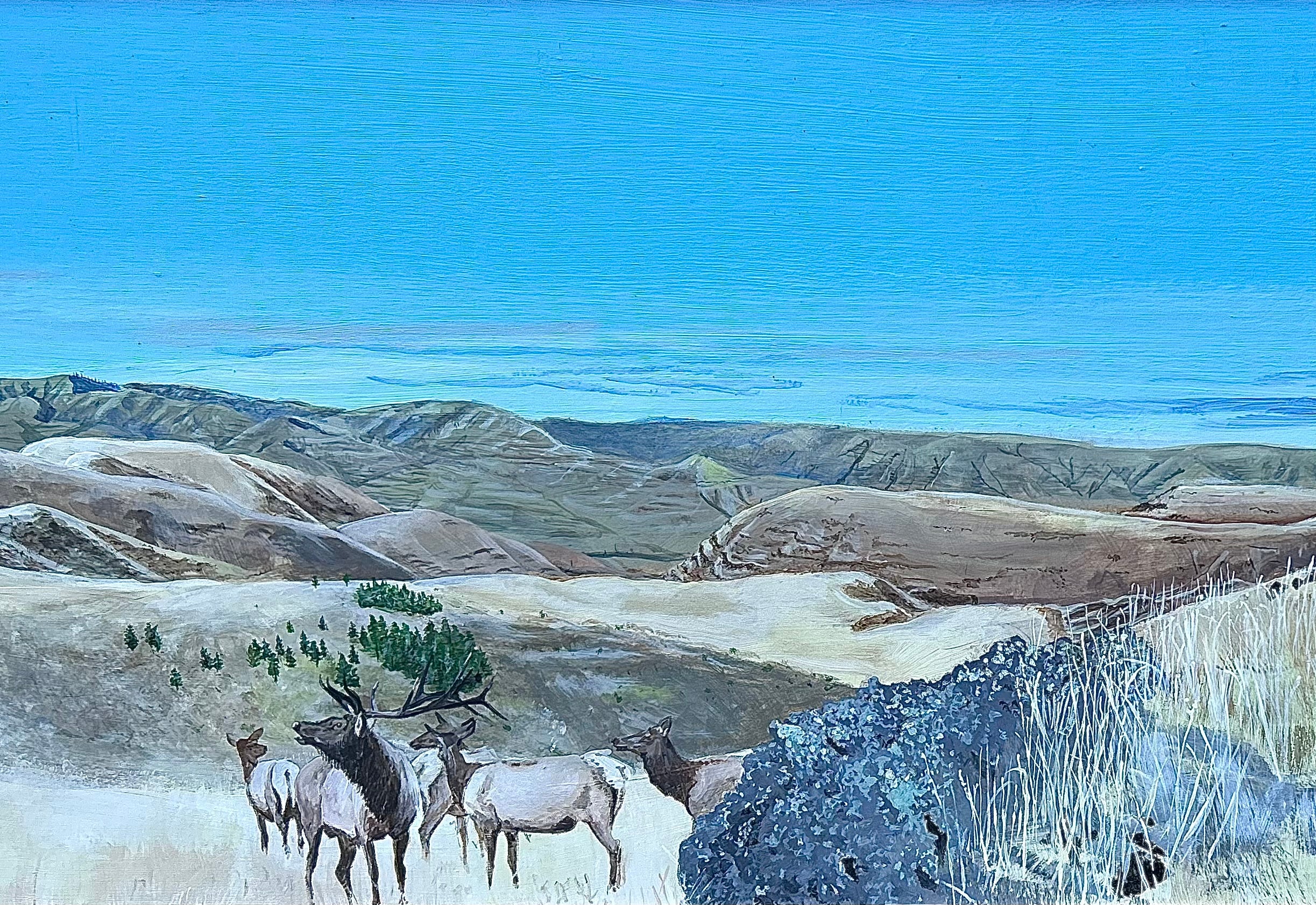Get in touchContours is an exploration into some of the nonhuman inhabitants that make up the Pacific Northwest bioregion. The paintings chronicle my love for the backcountry of these wild places, all public lands, and aim to invoke a sense of interconnectedness and beauty. Public lands (aka stolen native lands) within the Pacific Northwest region have an astonishingly diverse landscape of grasslands, steppe, mountains, deserts, forests, rivers and watersheds. Each work features of particular animal species that require unfragmented healthy habitats.